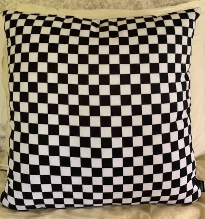 - (New) Geometric Check Square pattern throw pillow in Black and Creamy White by Society 6.