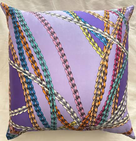 - ANN GISH "Chains" Pillow is made with 100% silk scarf fabric. Knife edge pillow. Gorgeous vibrant color.