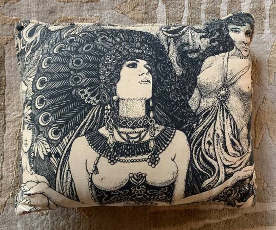 - 1960's Vintage custom-made Black and off-White cotton one-of-a-kind fabulous custom "Women" pillow.