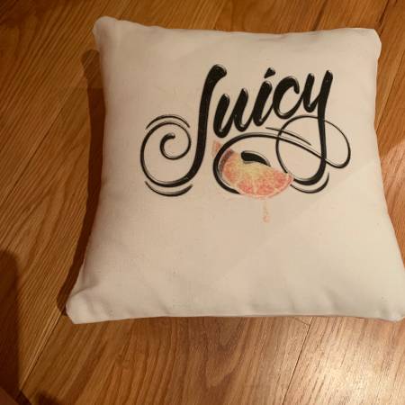 Double-sided print, polyester twill fabric, concealed zipper enclosure, individually cut and sewn by hand 16"x 16": $20