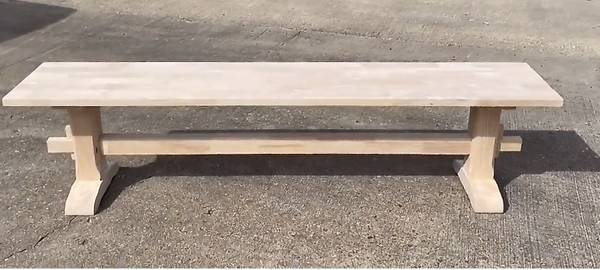 Extra-Large Solid Natural Wood Trestle Bench for Sale.