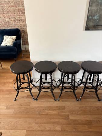Five Restoration Hardware Vintage Toledo Barstools Adjustable Distressed Black ($1200) Exceptionally well made! Vintage, discontinued, no longer made. Great patina that only comes with age!