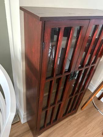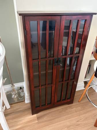 Solid Wood Curio Cabinet with wood and glass doors 26 inches wide x 48 inches tall x 9 inches deep Adjustable shelving