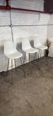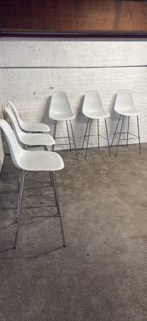 Bring iconic mid-century style to your space with this stunning set of 12 authentic Herman Miller Eames Molded Plastic Stools. Featuring a sleek chrome base and ergonomic design, these stools are perfect for café areas, collaborative workspaces, kitchen counters, or high-top tables.