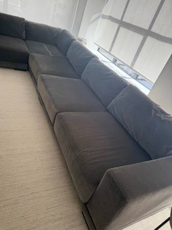 Large, comfortable L-sectional by Room and Board. Light wear. From a non smoking home with no pets. Sectional is fully modular so the pieces can be arranged as you wish. 113” Length 148” Length 26”...