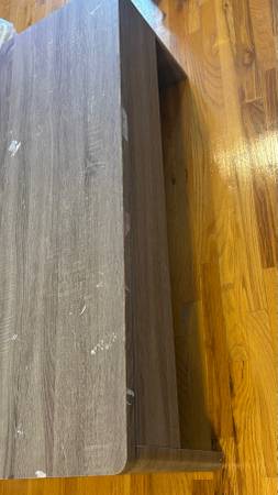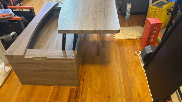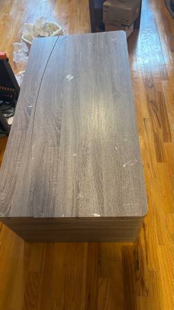 Grey lift top coffee table, some scuffs on the coffee table paper lining. Still works well 23.74” d 47.25” w 16” h 25.5”h fully lifted