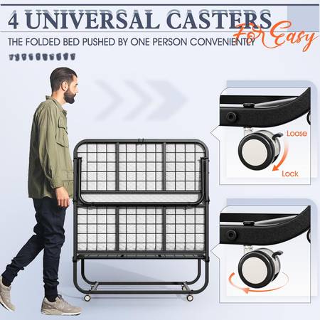 Like New only used 2 times by a teen INTERGREAT Folding Bed with Mattress, 75" x 31" Thick Memory Foam Mattress, Portable Beds for Adults, Metal Bed Frame on Wheels for $100 Serious Inquiries (PICK...