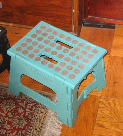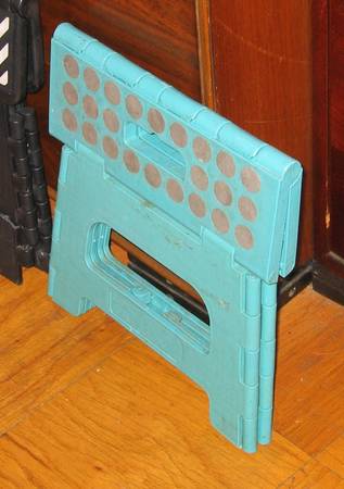 COLLAPSIBLE (folding) STEPSTOOL OR LOW SEAT. Light weight but able to support average adult. Perfect for camping, workshops, footstool or low seating. Great for outdoor concerts or performances when you don't want to sit on the ground, sitting instead of standing waiting on a line and perfect for boosting child to sink side for hand washing or teeth brushing. Fold away to store when not needed. $10. phone number please