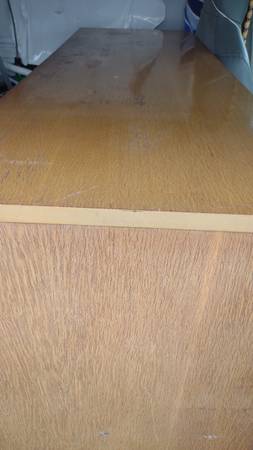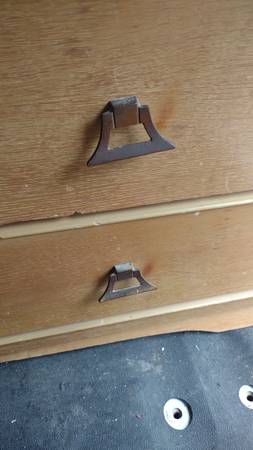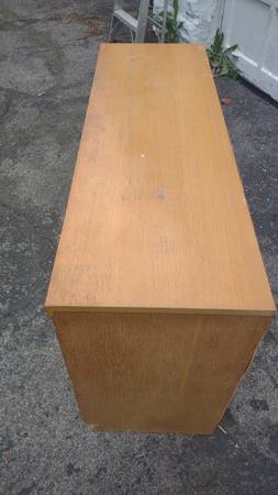 missing a drawer pull and another one is cracked, but still works. can use a painting or refinishing..... good bones sturdy and heavy overall size: 32" tall 18" deep 54.25" wide pcny