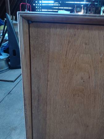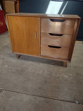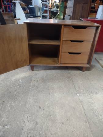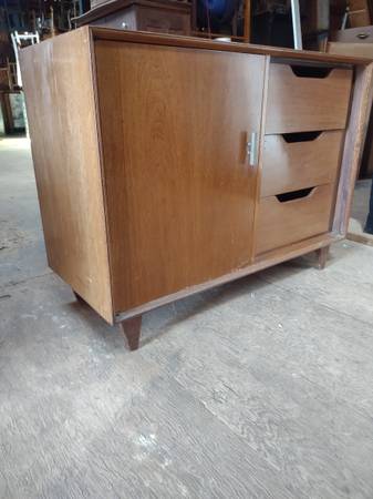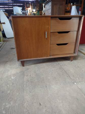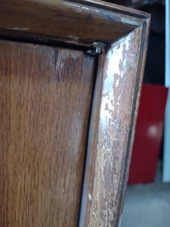 no brand: in need of TLC (but still functional as-is) -see pics one door is not mounted and would need some work to mount back (but looks good without it too) -salvage door comes with it, in case...