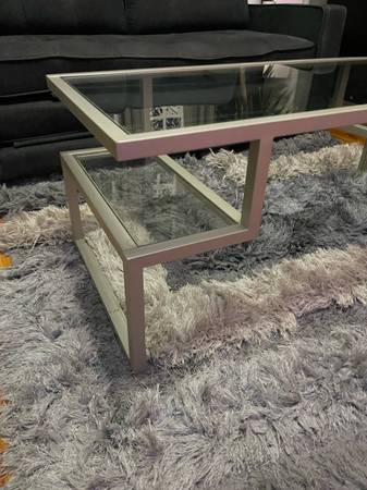 Selling a stylish glass top coffee table. It's in great condition and would look great in any living room! For pickup only Serious inquires