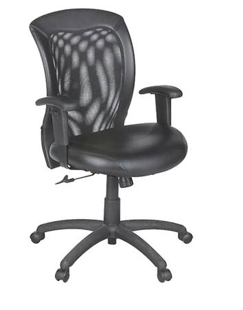 Stay cool and comfortable at the office with this Global Airflow leather and mesh high-back manager's chair. Black bonded leather upholstery lends upscale style and durability to this chair, while the mesh back lets air circulate to keep you cooler under pressure. The armrests adjust up and down effortlessly with simple button mechanisms, so you can find the right position for your arms and shoulders. Featuring a contoured, adjustable waterfall seat, this chair promotes better circulation. The built-in lumbar support eliminates the need to add extra cushions or pillows to ease sore muscles, and the pneumatic seat height adjustment feature makes it easy to configure this Global Airflow high-back manager's chair for maximum comfort.