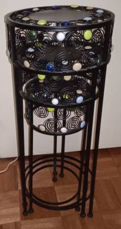 ONE Set of Three Round Nesting Pedestal Tables $50 Cash Only