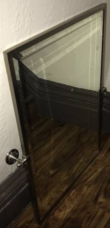 Pottery Barn Kensington Wall Mirror For Sale. Dimensions: 24” x 36” x 3” depth with hangers. Features brushed metal frame. Some signs of use. Good overall condition. >>>Message only if...