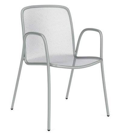 These commercially rated dining chairs have a durable powder-coated finish and a steel mesh design that allows water to drain. Comfortable for all, Aruba’s wide seat and back and contoured shape invite you to linger outside. This modern chair is light enough to easily move and stack, but substantial enough to stay put in windy conditions.
