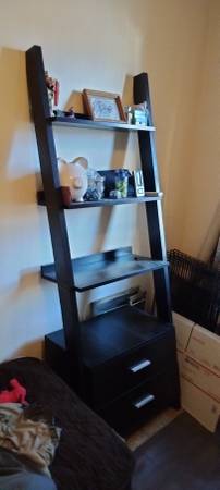 Ladder wood shelves with 2 drawers Espressos color 6 floor walk up Cash only
