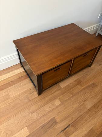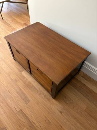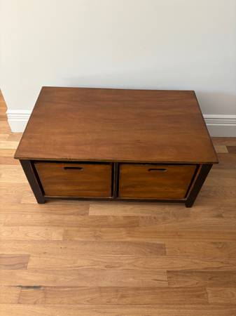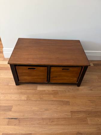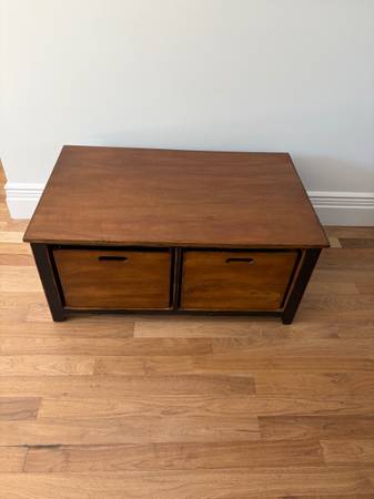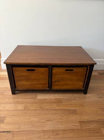 Solid Wood Coffee Table with Four Storage Crates 42”W x 26”D x 19”H