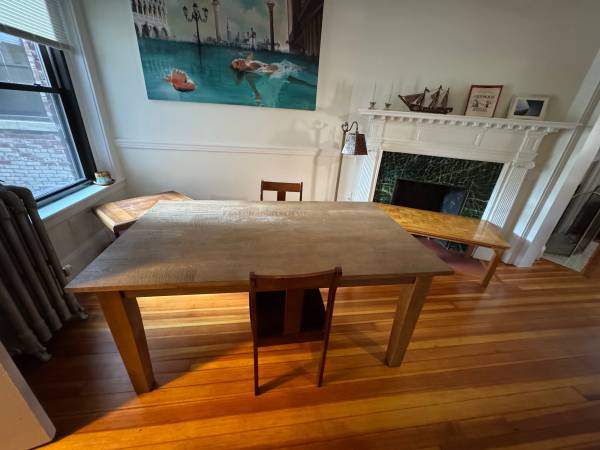Sturdy and classic solid wood dining table. Purchased new (for $800) in the last year and lightly used by two adults who since moved to a smaller space.
