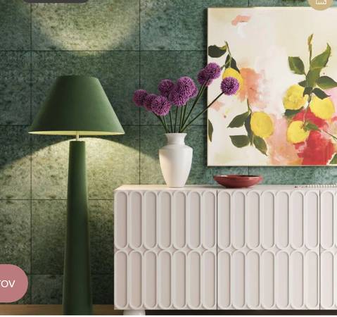 I have a brand new Tov Graham Velvet Floor Lamp. I am redecorating my living room and ordered this lamp, which is beautiful, but it's not the right shade of green and I already threw away the boxes. It is more of a moss green than forest green. Paid $329. In addition, I have the matching table lamp (also for sale)