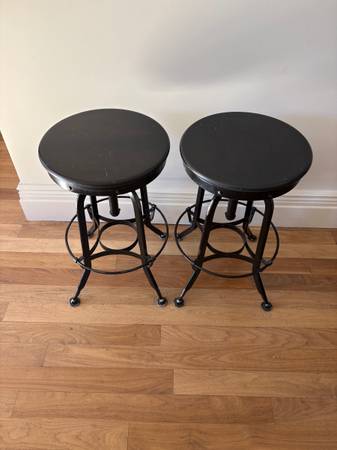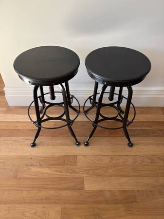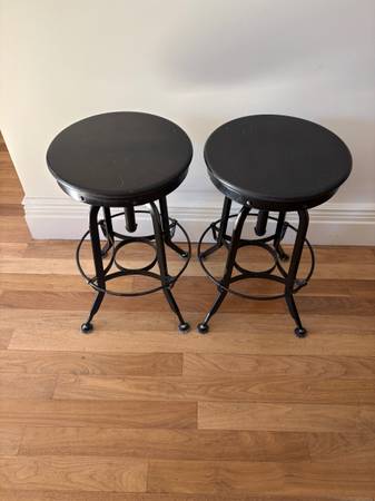 Two Restoration Hardware Vintage Toledo Bar Stools Distressed Black Adjustable ($500 For Pair) Exceptionally well made! Vintage, discontinued, no longer made. Great patina that only comes with age!...