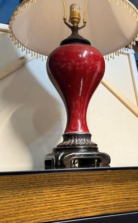 Vintage Elmira Large Red Ceramic Table Lamp w/ Dark Bronze Accents for Sale.