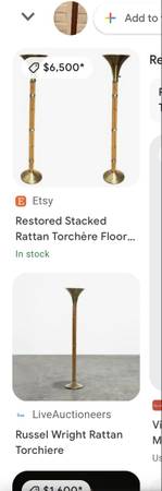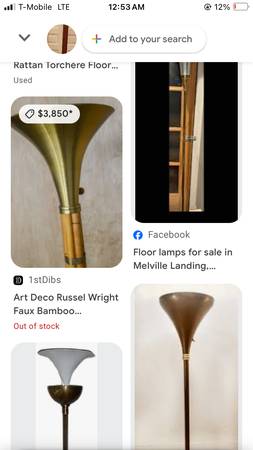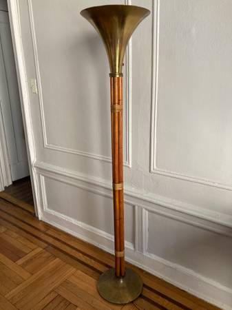 Vintage Mid Century Modern Russell Wright Bamboo Torchiere Floor Lamp