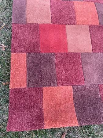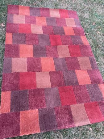 Vintage modern red brick patch wool area rug is in good shape. This is 100% wool and hand tufted. This measures 5' x 7'9" with about .87"thick.
