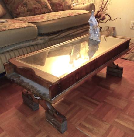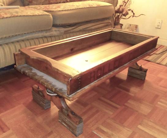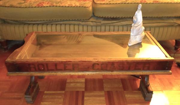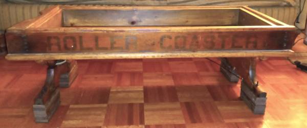 Vintage Roller Coaster Wood Wagon Coffee Table $425 Cash Only Repurposed wagon body One of a kind piece Double-sided “Roller Coaster” stencil lettering Very good condition, considering the age of...