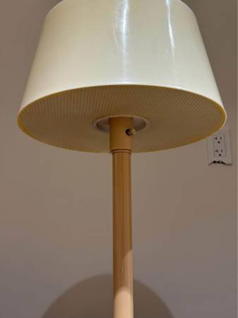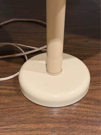 Vintage 60s or 70s table lamp. Beige. 14” W x 22.5” H. Metal with plastic shade. Tested and works. Takes a standard lightbulb. Pick up from Lower Manhattan. Apple Pay, cash or Venmo.
