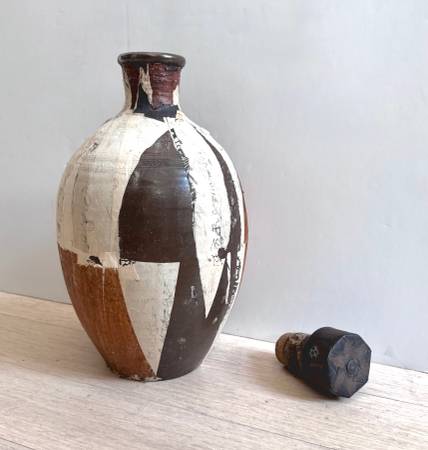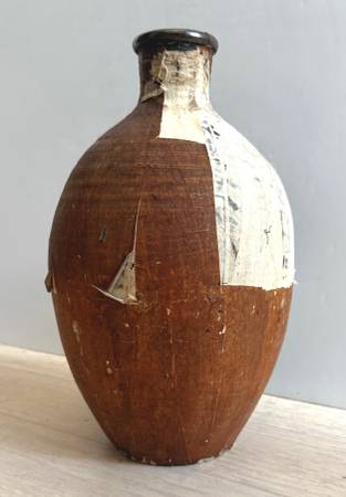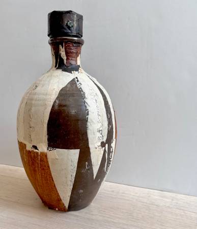 Tea Bottle or Flower Vase 19th Century Tsubo Wabi-Sabi Ceramic, paper, metal, cork 18.12 x 9.45 x 9.45 in Provenance. Sammu-shi, Japan Conventional wear from age and the improvisation technique of...