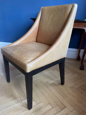 These chairs are sturdy and comfortable, lovely warm golden-camel color, we are moving but they’re still in great shape and I hope another family can use them! Cash only please.