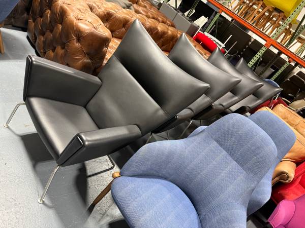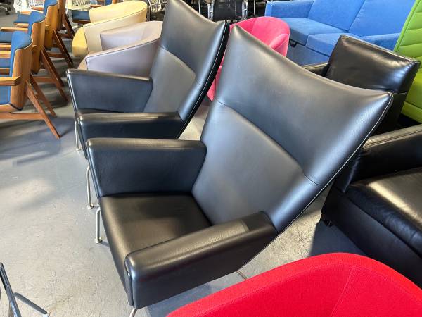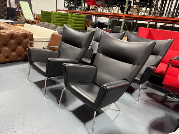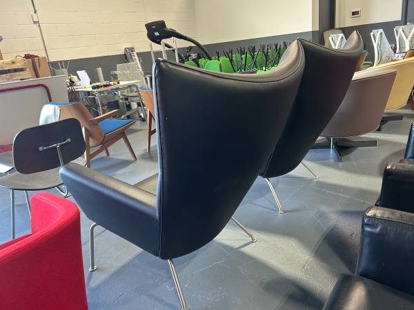 Gorgeous black leather Hans Wegner, Carl Hansen & Son wing chairs. All in excellent shape. We have 4 AVAILABLE. Selling for $3,000 EA. Pick up from our warehouse in Saddle Brook, NJ.