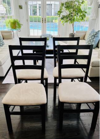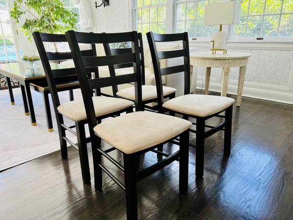 Set 4 Italian Made EbonyFinish Beige Chairs W UltraSuede Seats -...