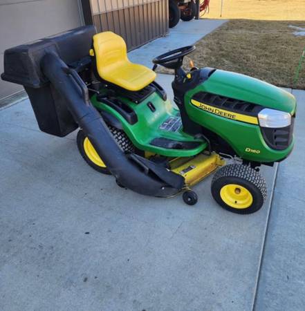 A John Deere D160 Riding Mower, Starts right up. Runs, drives, mows as it should, hour meter shows 280hrs