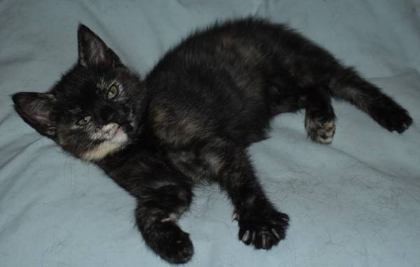 Adorable Tortoiseshell kitten is available for adoption. Healthy, playful, well-behaved, and very cuddly. 3 month-old, litter box trained, indoor parents. Great companion Will not Shed Indoor parents