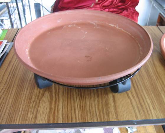 UNDER PLATES various containers bowls and dishes to catch water runoff from your plants. Hand thrown pottery platters and bowls ($3 to $5 any 3 for $10). (phone number please)