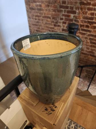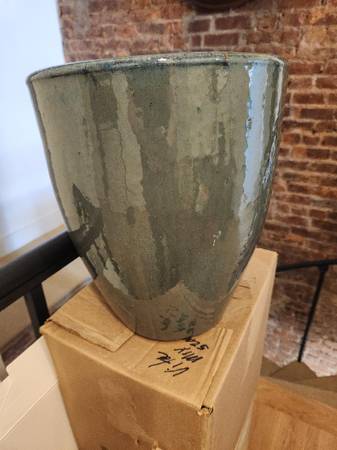 beautiful blue plant pot. Has a hole for drainage. 10.5"dia x 12"high Cash and carry $75 or best offer