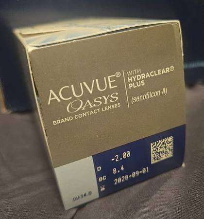 unopened box - 24-pack Acuvue Oasys with Hydraclear plus Power: -2.00 Base Curve 8.4 Diameter 14.0 Expiration 2028