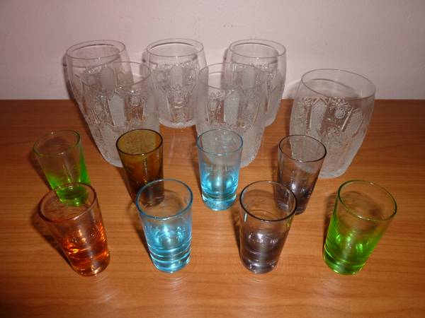 glassware, wine glasses, stemware, mugs, & champagne flutes - generally $1 - $2 each