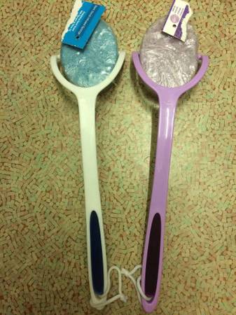 * 2 Long Back Scrubs Infused Sponges - NEW - one is lavender / camamile scent, the other is energizing sport scent with glycerin and olive oil.