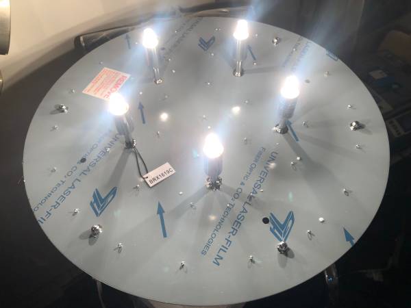 Quoizel Bordeaux 5-Light Polished Chrome Flush Mount Light was never installed. Does include all hardware and mounting bracket and bulbs. Requires 5 40-watt G9 bulbs. Crystals remain in original wrappers, no box. Light can be demonstrated. Shown by appointment in East Meadow.