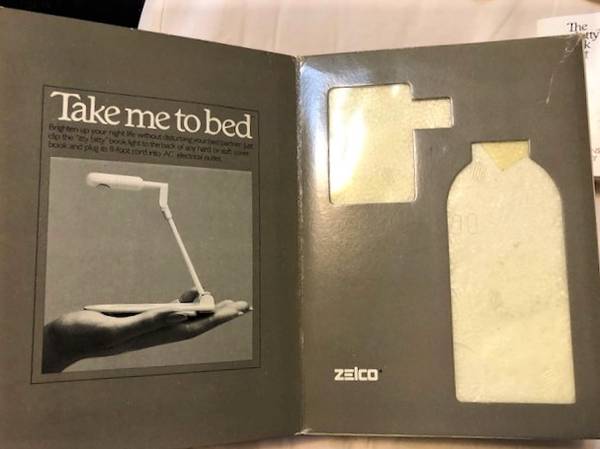1983 The ‘itty bitty book light Abridged Edition, in original box with original instructions. The light has a loose switch and doesn’t light - probably because it needs a new bulb. The box shows some wear. This is great when the light is inadequate for reading.