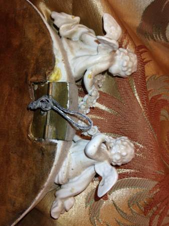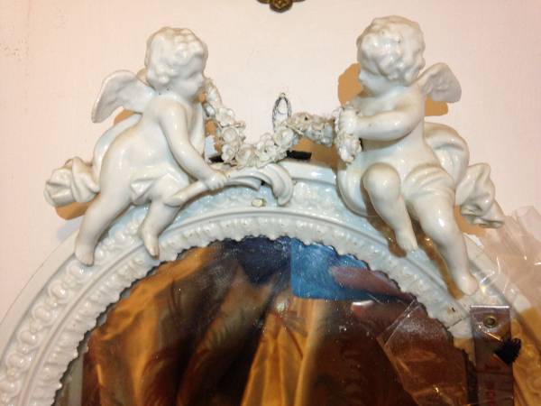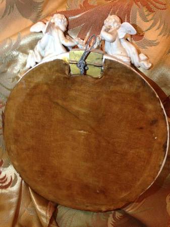 Antique 19th C. Porcelain Cherub Mirror holding garland of flowers 250