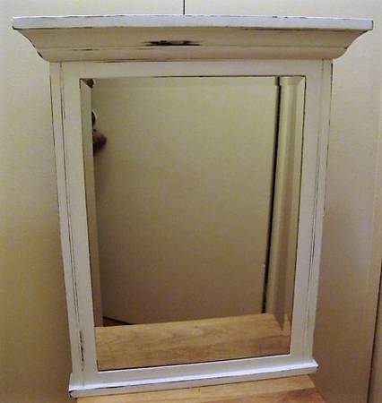 Beveled Wall Mirror - Shabby Finish $20 Cash Only Beveled Wall Mirror set in an Italian, Tabernacle style wood Frame with a soft shabby finish. Beautiful molding on top, with sharp angles and edges....