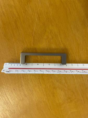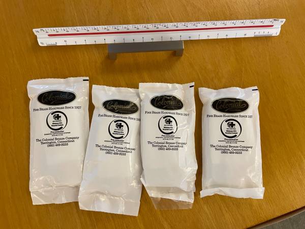 four total - 4" cabinet pulls. Finish looks like a polished nickel. pick up on weekdays 9am-6pm, in an elevator office building on Vesey St. and Church Ave.