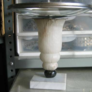 ... Porcelain DOUBLE FLORAL BEAD STEM with metal base and glass top. 6 3/4" high. Top 8" diameter $12. (phone number please)