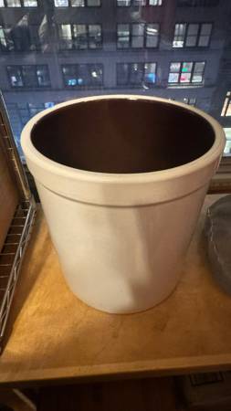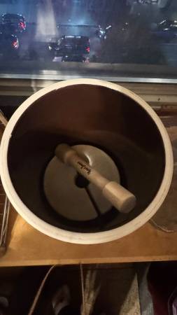 Sturdy, glazed ceramic crock perfect for making kimchi, sauerkraut, pickles, and other ferments. Includes the original internal pressing weights and a wooden tamper. Clean, in great condition, and ready for use. Heavy, stable build โ ideal for traditional fermentation.