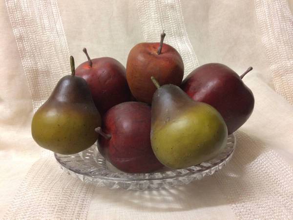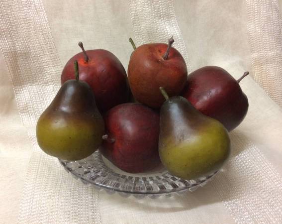 There are 4 apples and 3 pears -- all very realistic looking -- and they won't attract little fruit flies!