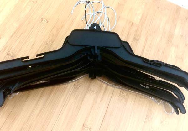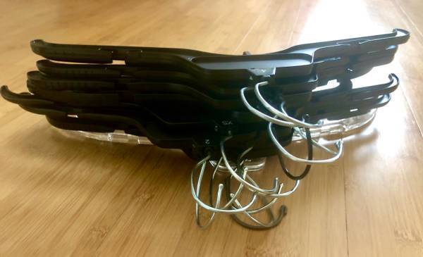 Great clothes hangers ideal for everyday use! No more messy piles of clothing in your cabinet! Count: 12. Color: black. Highly recommended!
