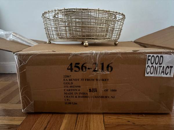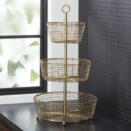 Gold 3 tiered iron fruit basket. Never used, in box! Can hold tons of produce Pick up 66th and 3rd, cash or Venmo